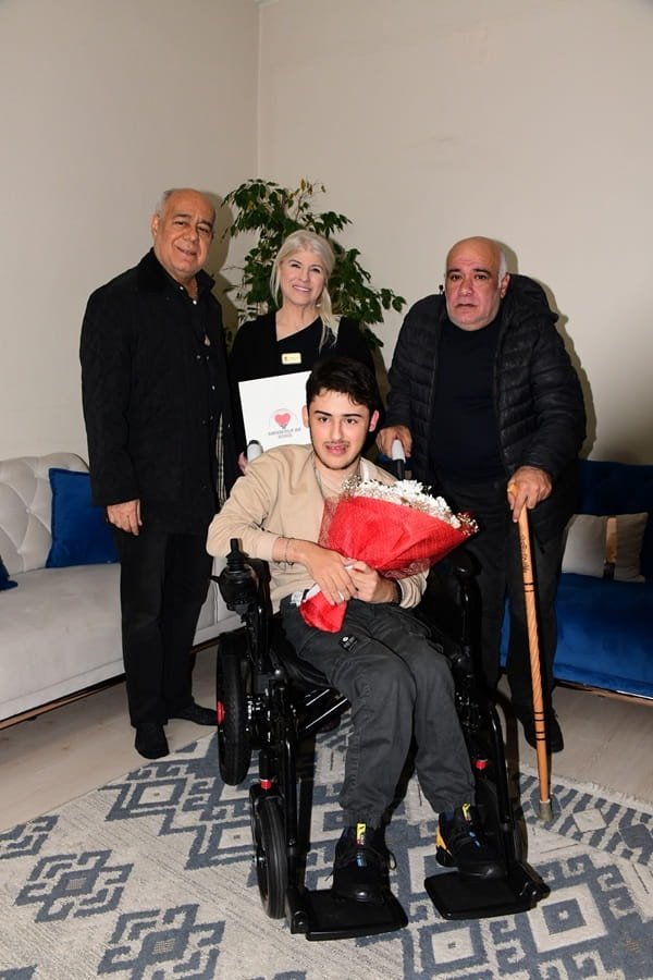 Kurulduğu günden bugüne kadar pek çok ihtiyaç sahibine ulaşan ve yaptığı iyilik hareketleri ile takdir toplayan “Dünyada İyilik var Derneği”ihtiyaç sahibi bir çocuğun daha hayalini gerçekleştirdi. Doğuştan yüzde doksan engelli olan ve serebralpalsi hastalığı ile mücadele eden Ali Abdül Samet Ülker’i ailesi ile birlikte yaşadığı Ümraniye’deki evinde ziyaret eden yardımsever iş insanı ve dernek kurucu başkanı Menekşe Kankavi ile dernek engelli bireyler sorumlusu Hasan Polat ve genel koordinatör Atilla Kaplakarslan akülü tekerlekli sandalyeyi teslim ettiler. Dr. Servet Terziler’in maddi katkıda bulunduğu akülü tekerlekli sandalyesini 23 Nisan’da teslim alan Ali Abdül Samet Ülker sevincini annesi Nurcan Ülker, babası Mustafa Ülker, kız kardeşleri Rabia, Zeynep ve Sümeyye Ülker ile paylaştı.